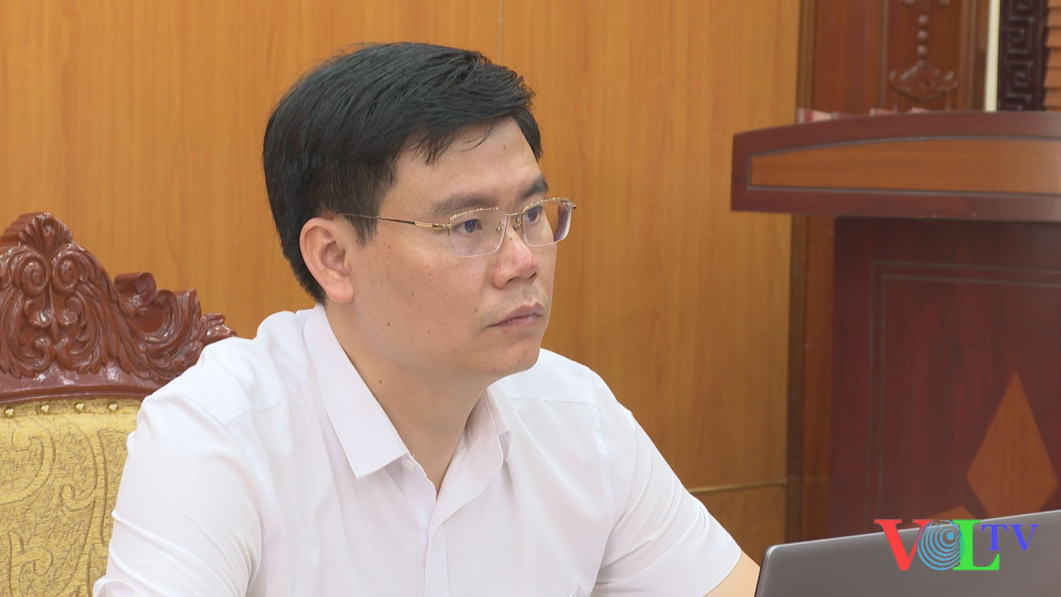 Đồng chí Lê Minh Ngọc - Chủ tịch UBND xã, Chủ tịch Hội đồng NVQS xã Vĩnh Trụ dự hội nghị tại điểm cầu xã Vĩnh Trụ