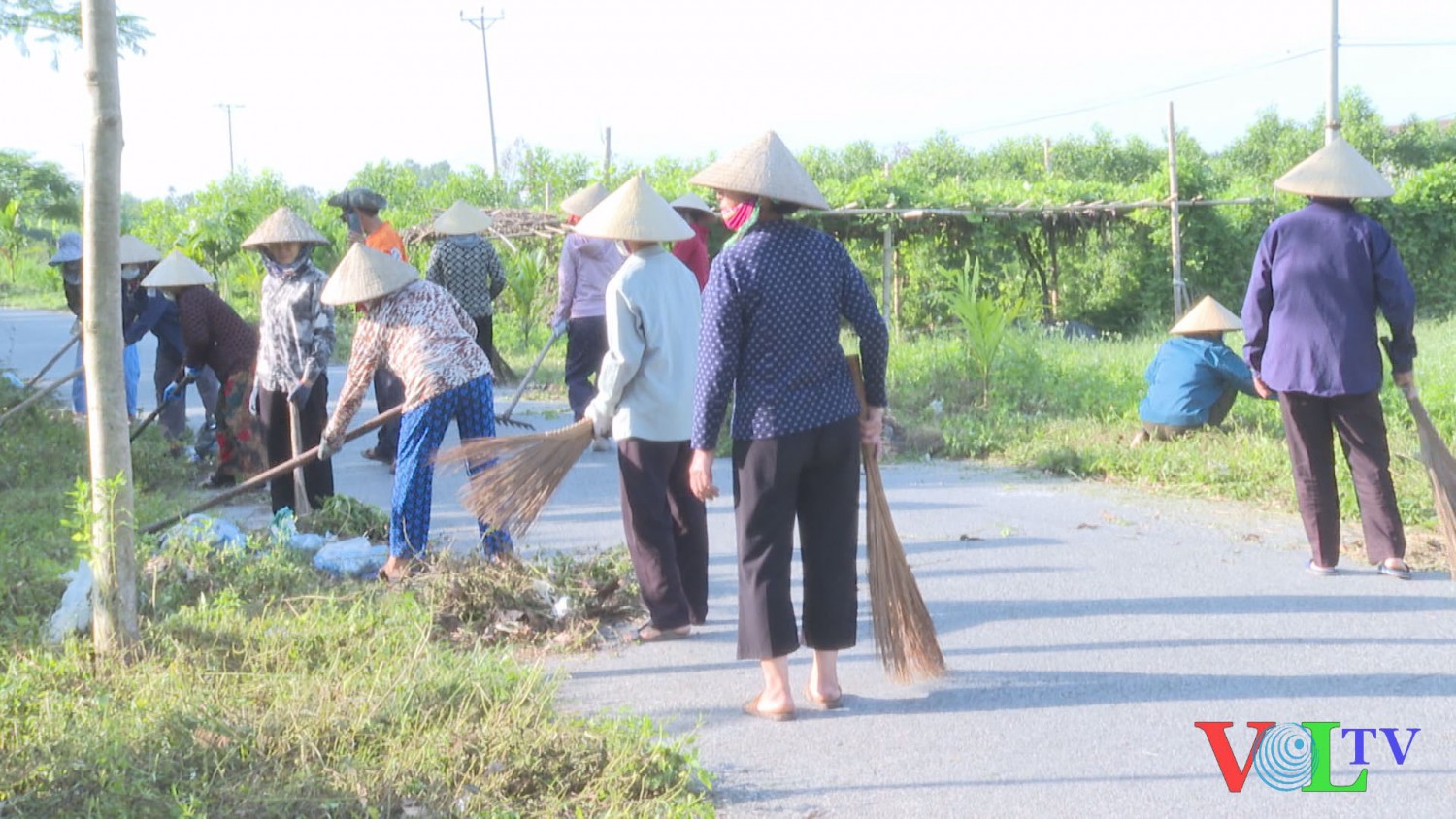 Hội viên các tổ chức chính trị xã hội ra quân tổng vệ sinh môi trường. Ảnh: Văn Vương