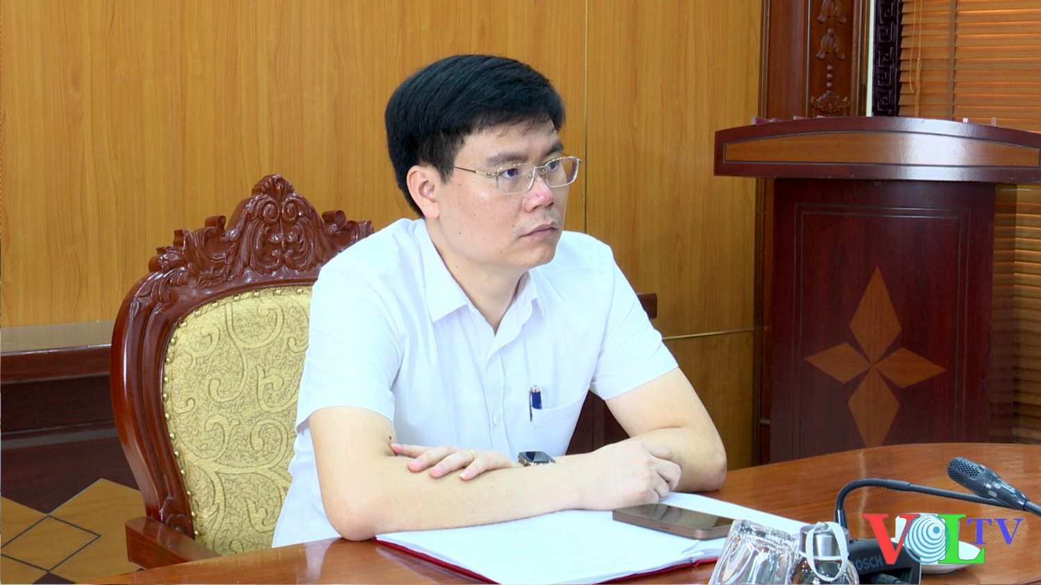 Đồng chí Lê Minh Ngọc - Phó Bí thư Đảng uỷ, Chủ tịch UBND xã dự hội nghị tại điểm cầu xã Vĩnh Trụ. Ảnh: Vân Sơn