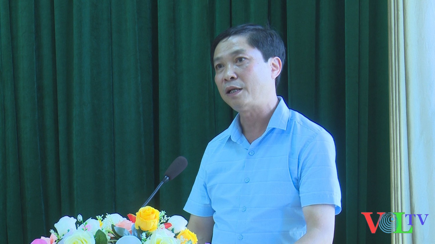 Đồng chí Dương Đức Hiểu - Giám đốc Trung tâm Trung tâm Văn hoá, Thông tin và Thể thao xã Vĩnh Trụ phát biểu tại buổi gặp mặt. Ảnh: Văn Phúc